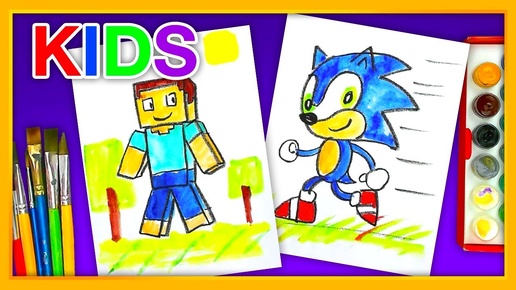 Соник и Майнкрафт ПРОСТЫЕ РИСУНКИ 😍 РыбаКит папа рисует