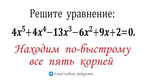 Находим все 5 корней уравнения 4x^5+4x^4-13x^3-6x^2+9x+2=0 по-быстрому