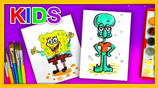 Губка БОБ рисуем всех героев 😍 РыбаКит папа рисует
