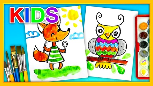 ЛИСИЧКА и СОВА рисуем красками 😍 РыбаКит папа рисует