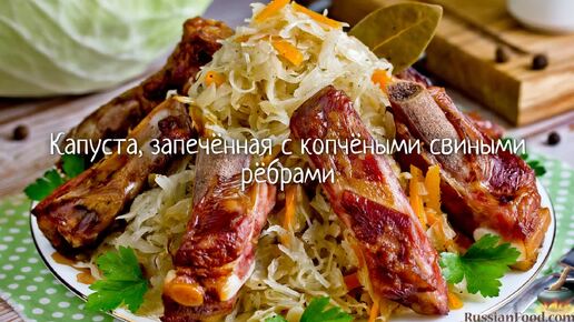 Ароматный аппетитный фокус. Капуста, запечённая с копчёными свиными рёбрами