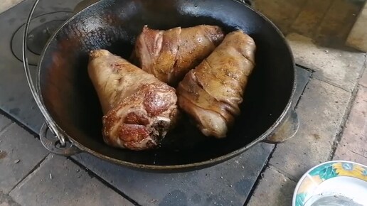 Рулька в казане в томатном соке