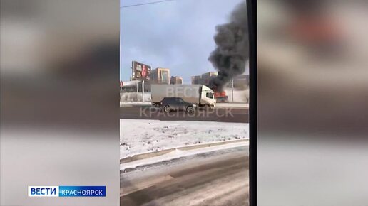 В Красноярске возле Октябрьского моста загорелся автобус
