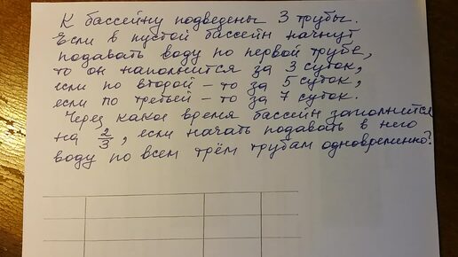 Математика 5, 6 класс. Бассейн и три трубы, наливающие в него воду. Задача.