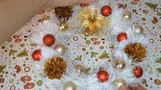 Красивый РОЖДЕСТВЕНСКИЙ ВЕНОК из КАРТОНА и МИШУРЫ Новогоднее рождественское украшение к Новому году своими руками