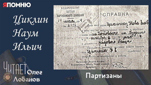 Циклин Наум Ильич. Проект "Я помню" Артема Драбкина. Партизаны.