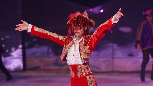 Кармен на маскараде в исполнении Евгении Медведевой в ледовом спектакле Ильи Авербуха "Кармен"