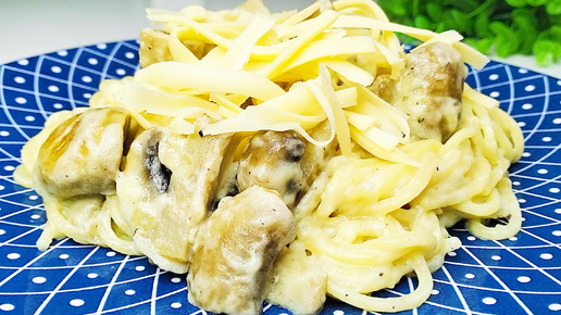 Спагетти с грибами в молочном соусе: обед за 15 минут