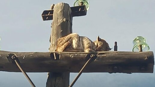 В Хакасии спасли рысь, забравшуюся на электроопору