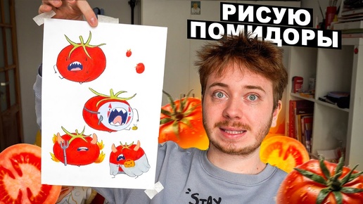 Рисую новые наклейки мелками | Страшно милые помидоры и Хэллуин