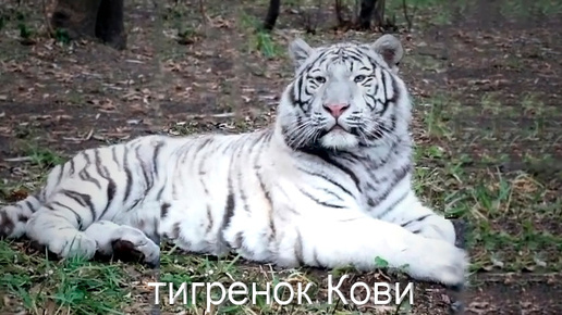 Бенгальский тигренок Кови развлекается в вольере, а взрослая Зая отдыхает.