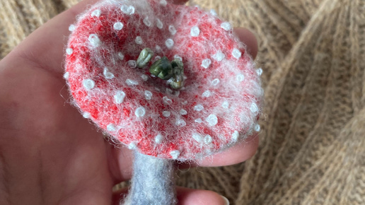 Брошь мухомор из шерсти
