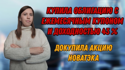 Добавила в портфель облигацию с ежемесячным купоном и доходностью 43% | Докупила акцию Наватэка