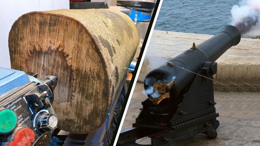 Гигантское бревно превращаем в мощную деревянную пушку!