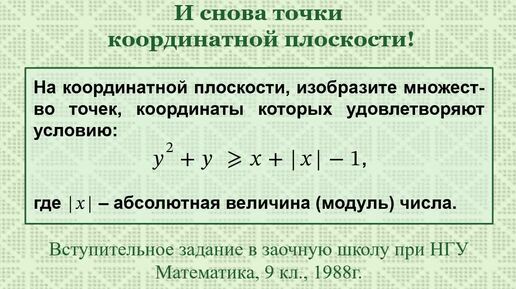 Множество точек плоскости, для которых 𝑦²+𝑦 ⩾𝑥+|𝑥|−1.