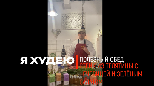 Рецепт полезного обеда - стейк из телятины с гарниром из чечевицы и свежим салатом