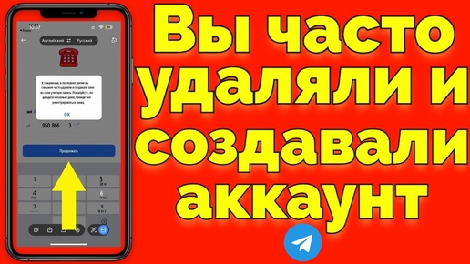 К сожалению, в последнее время вы слишком часто удаляли и создавали заново свою учетную запись Телеграм
