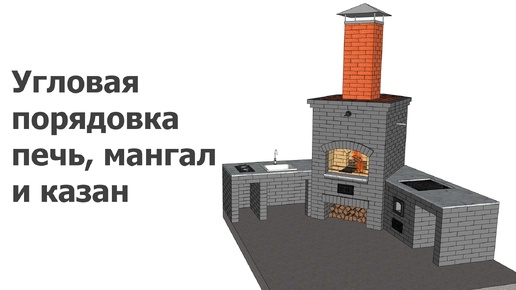 Угловая порядовка печь, мангал и казан