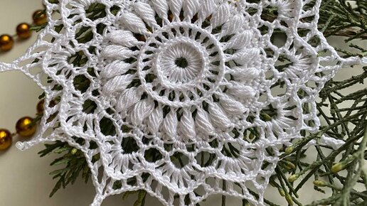 Объёмная снежинка с пышными рельефнолицевыми столбиками.