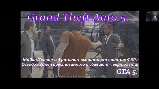 Grand Theft Auto 5.GTA 5.Майкл,Трэвор и Франклин выполняют задание ФБР.Освобождают арестованного и сбивают 3 вертолёта.Экшн приключение.