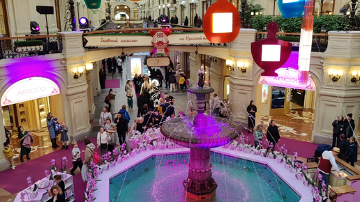 Обзор на второй этаж ГУМА. Показываю какие виды открываются со второго этажа ГУМ. Магазин украшенный по осеннему. Музыка у фонтана в центре