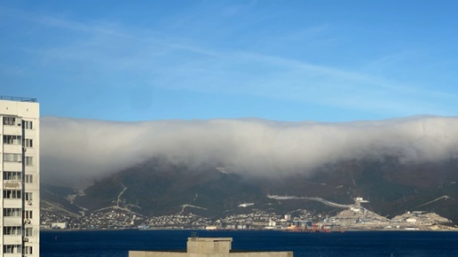 Эти облака зовут «бородой». Они предвестник сильного ветра Боры, который дует в Новороссийске.