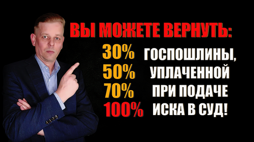 В каких случаях вы можете вернуть 30%, 50%, 70% или 100% госпошлины, оплаченной при подаче иска в суд