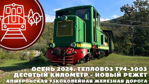 Апшеронская узкоколейная железная дорога. Перегон Десятый километр - Новый Режет. Тепловоз ТУ4-3003. Осень 2024