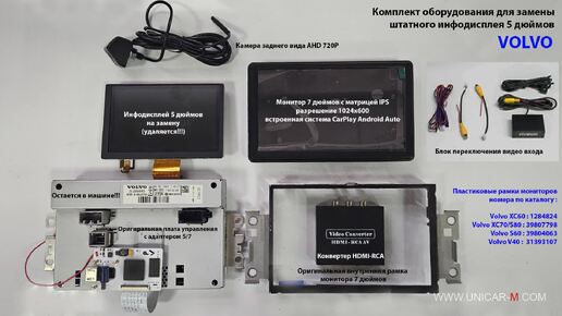 Замена инфодисплея Volvo 5 дюймов на монитор 7 дюймов с системой CarPlay Android Auto