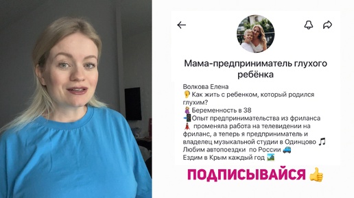 Мама-предприниматель глухого ребенка Волкова Елена: видео знакомство