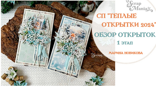 Новогодние открытки Марины Новиковой по 1 этапу СП "Теплые открытки 2024" ScrapMania