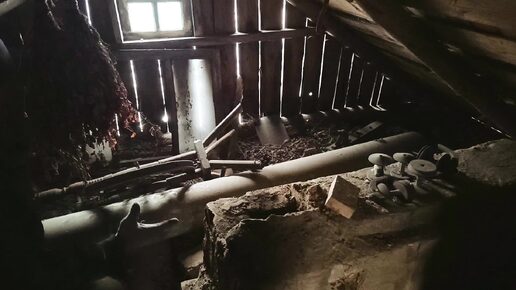 Сделали и затопили печь в летней кухне. Выбили часть стены, установили новую дверь. Залезли на чердак и на крышу. Рулетики с маком.