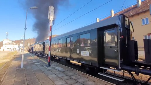 Паровоз Фрау с двухосными пассажирскими ретро вагонами