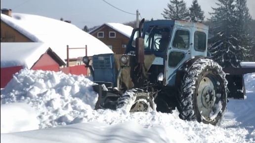 ТРАКТОР ЧИСТИТ СНЕГ В СЕЛЕ!
