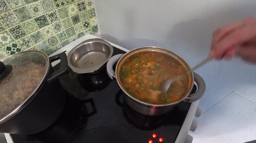 Обед и ужин из четырех блюд. Гречка с овощами, крылышки, рассольник . салат. Жизнь в деревне.