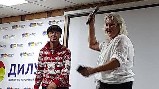 Вот такой образовался сказочный дуэт, внезапно прекратившись в трио😀 Отчетный концерт силами отдыхающих в санатории.