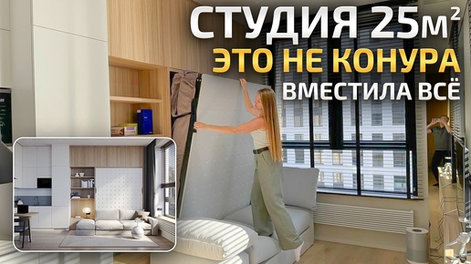 КРОШЕЧНАЯ студия 25м2 с кроватью ТРАНСФОРМЕРОМ. Дизайн интерьера. Обзор квартиры. Рум Тур