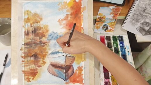 Акварельный осенний пейзаж