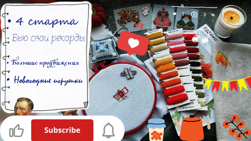 26/2024 Только про вышивку • Четыре старта ноября • Пробую вышивать шерстью • Новогодние игрушки • Море шовчиков • Бью свои рекорды