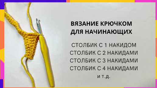 Вязание крючком для начинающих. Столбик с накидом. Столбик с 1 накидом. Столбик с 2 накидами.
