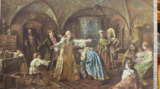 Продвижение вышивки "Игра в жмурки" по картине художника К. Маковского от "Чеширского кота", нитки схс, канва 22 каунт.
