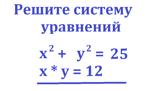 Решите эту систему уравнений: x^2 + y^2 = 25; x*y=12