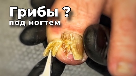 Колонии микроорганизмов живущие под ногтем. Подологическая чистка пораженного ногтя.