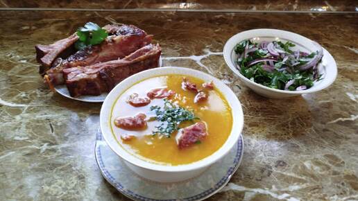Гороховый суп на копчёных рёбрах, самый вкусный суп в зимнее время!