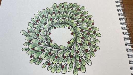 Рождественский венок. Простые рисунки шаг за шагом. #дудлинг #рисование