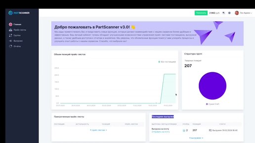 Выгрузка ассортимента на почту с вложением в сервисе PаrtScanner
