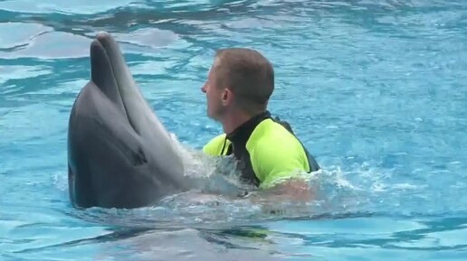 Дельфины пригласили тренера на танец - никогда такого не видел. Полный восторг, как они его посадили себе на нос и катали