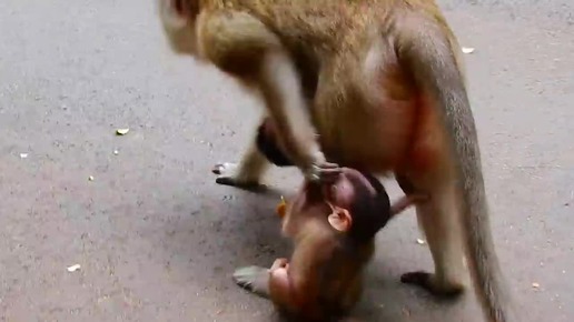 В этой сцене обезьяна избивает малышку которая громко плачет