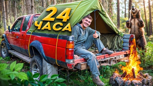 24 ЧАСА в ПИКАПЕ Челлендж! ВЫЖИВАЕМ в ЛЕСУ!