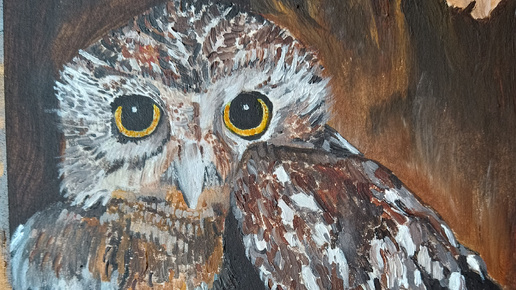 Пишем Домашнего сыча масляными красками. Сова 🦉. Что за птица сыч? Видео релакс. Создание картины, полный процесс. Творчество в мире Дзена.